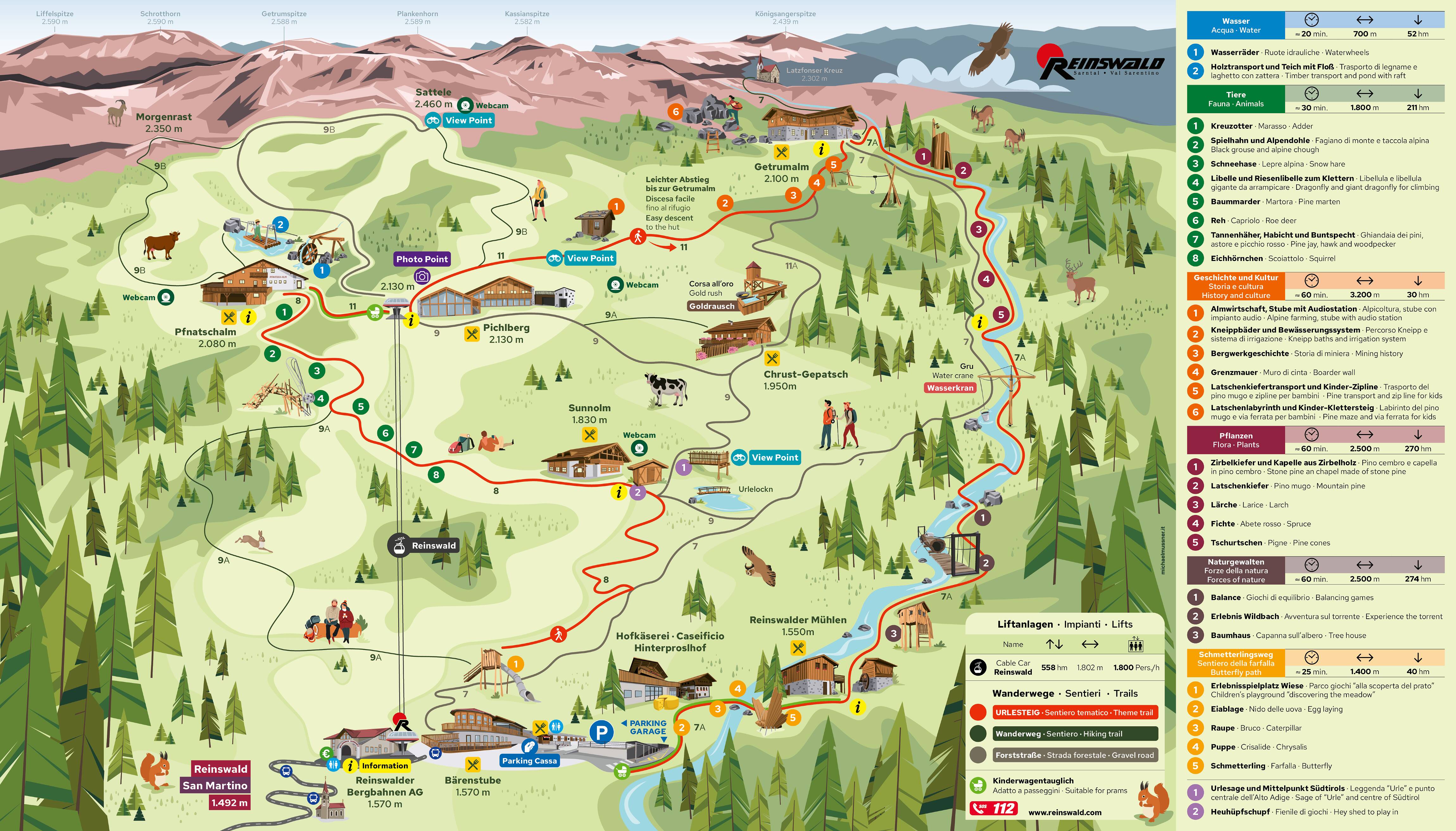 Benannt nach den "Urlelockn", zwei kleinen Weihern in der Nähe von Reinswald, unterteilt sich dieser Naturerlebnispfad in sechs Etappen, so dass du je nach Laune 70 bis 560 Höhenmeter absteigend bewältigen kannst. Den Ausgangspunkt des Urlesteigs erreichst du ganz bequem mit der Reinswalder Kabinenbahn.